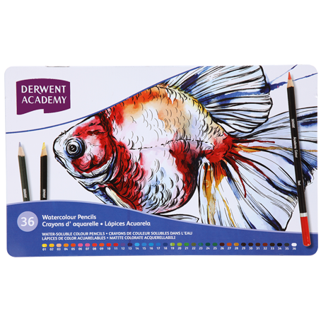 Watercolour Pencils are very versatile, they can be used dry as an ordinary colour pencil but just brush on a little water to create a uid watercolour painting. As with all Derwent pencils they are easy to sharpen and break resistant.
