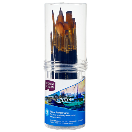 Derwent Academy Taklon paint brushes are made using high quality synthetic brown variegated taklon bristles that are complemented with a glossy black acrylic handle and finished with a gold plated brass ferrule.