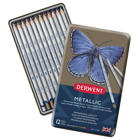 Looking to add some sparkle to your life? Derwent Metallic Pencils are just what you've been looking for! Perfect for all sorts of art & craft projects these highly reflective colours really 'pop' when you use them on a black background. They're water-soluble too so you can have great fun experimenting with interesting wash effects.