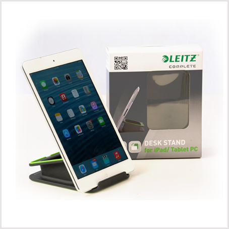 The Rotating Desk stand gives style and function on your desktop for your mobile devices. Rubber grips hold your device from slipping while you use it. Easily share what you are seeing on your device with those sitting near you with a simple twist. Whether you use your iPad as a stand-alone display for video chat and watching video or for productivity tasks like emails or editing documents, the Rotating Desk Stand will prop your device at the perfect angle.