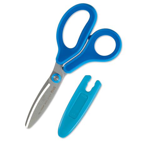 The scissors have a rounded tip, making them safe for children to use. The curved blades makes cutting smooth and effortless by distributing the strength evenly through the blade. The non-slip foam grip is soft and perfectly designed for small fingers. Blades are fluorine-coated making them nonstick. Easy to use while cutting sticky tape and surfaces.