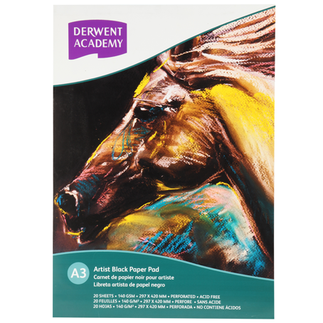 These pads are versatile and multipurpose. The durable 140gsm black paper is perfect for use with pastels, paints and metallic pencils. The paper is perforated so you can pull out your artwork and display in a folio to showcase your artwork!